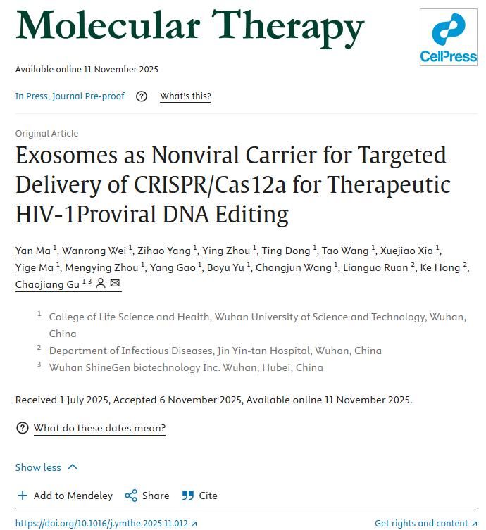 顾潮江教授团队创建。该技术称为“EMT-Cas12a”疗法(exosome-mediated targeted CRISPR-Cas12a delivery system),中文意思是基于工程化外泌体的靶向递送系统。